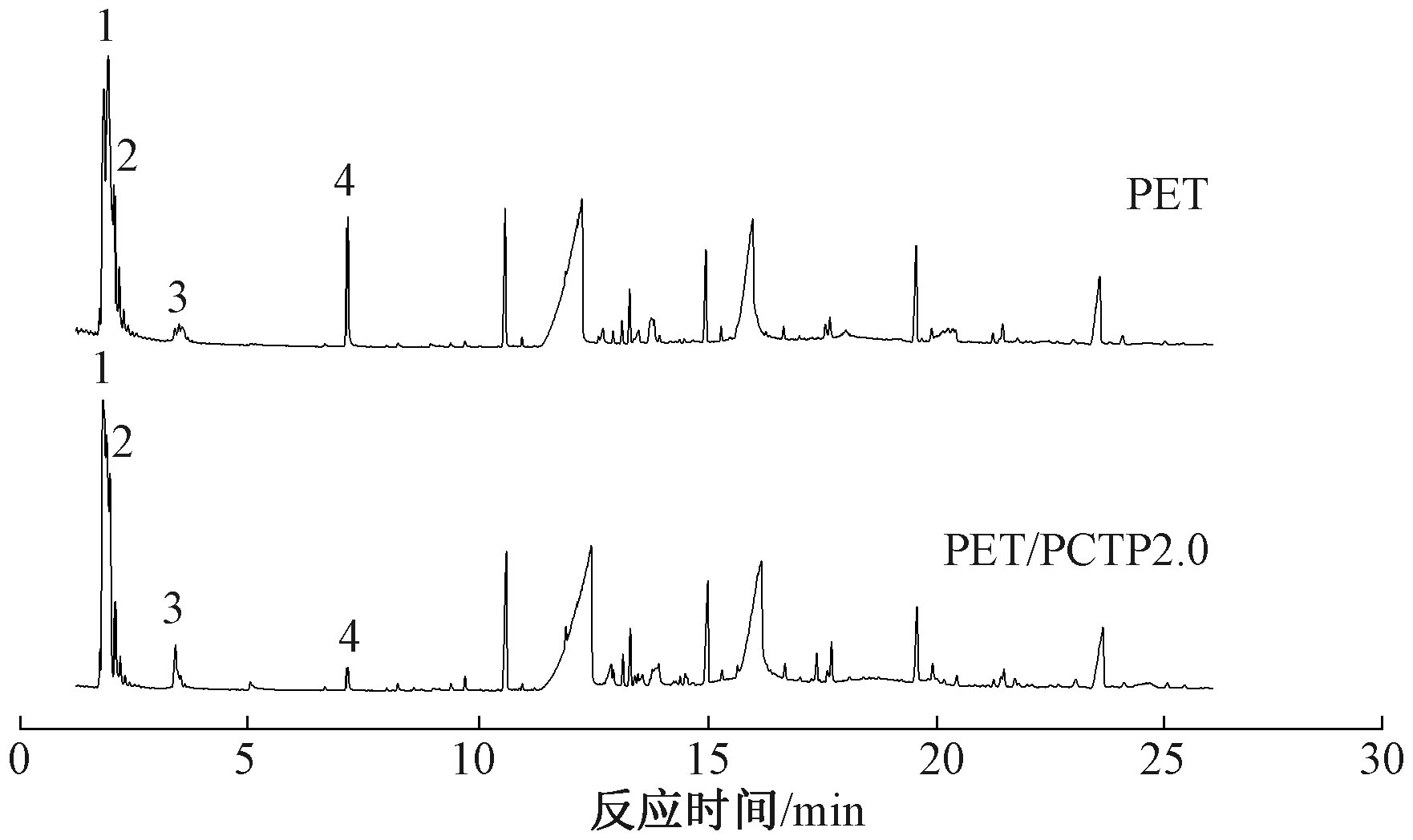 Pyrolysis products of PET and PET/PCTP2.0 at 600 ℃"