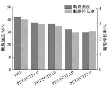 Tensile strength and elongation at break of PET and PET/PCTP composites"