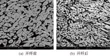 Microscopic morphology of nonwoven fabrics before (a) and after (b) fiber splitting (×1 000)"