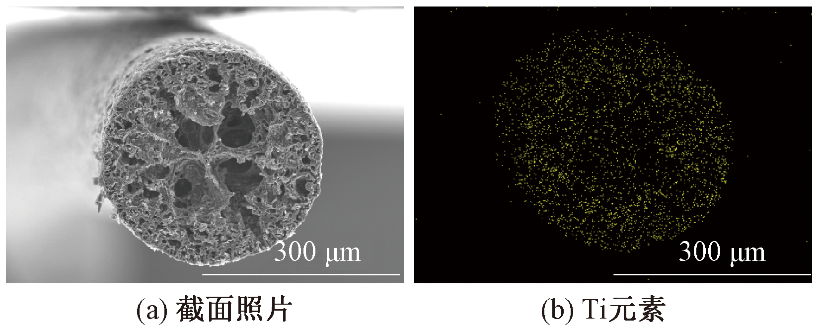 Cross-sectional image (a) and Ti element distribution map (b) of 5# fiber"