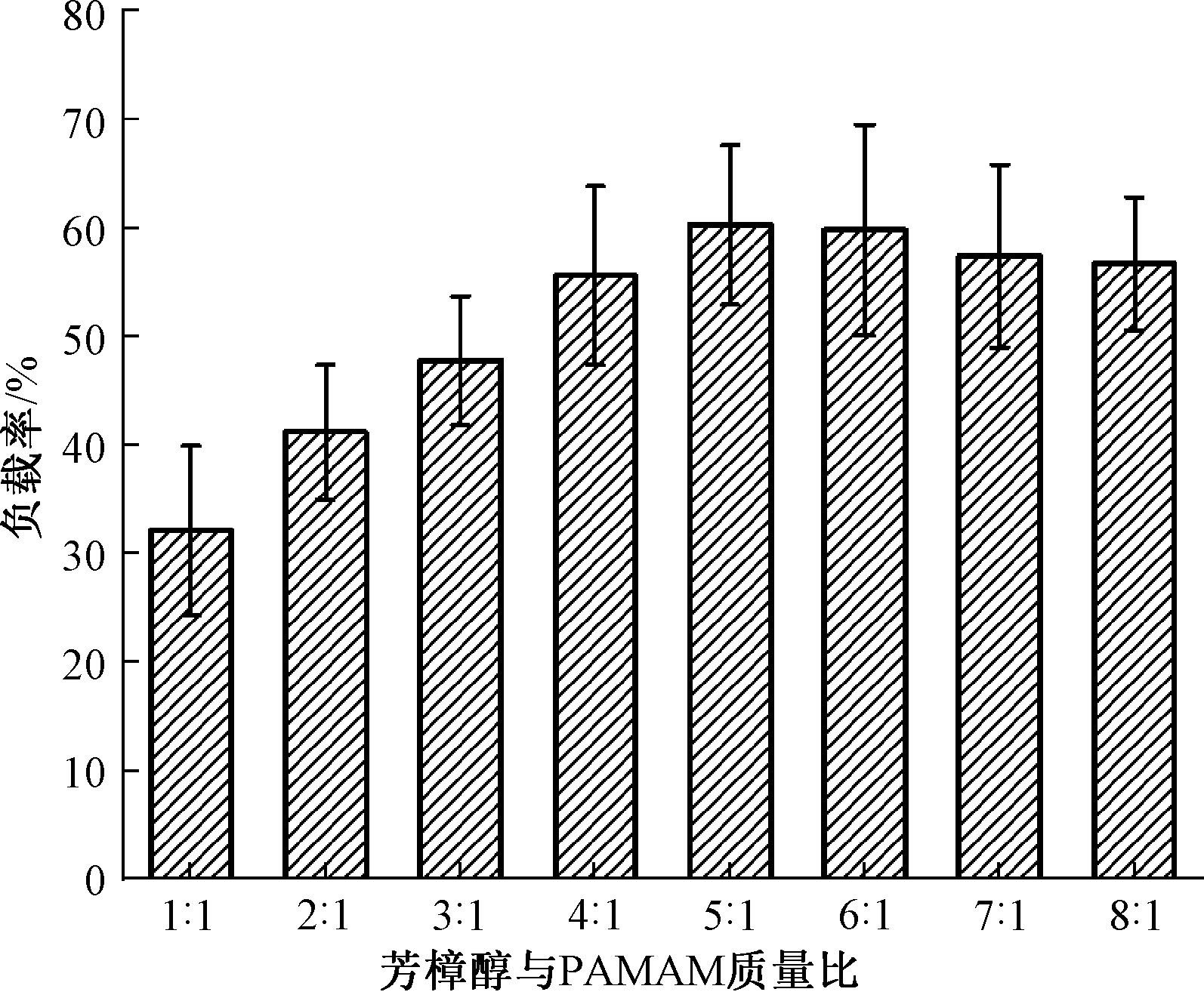 Loading rates of linalool by PAMAM at different mass ratios"