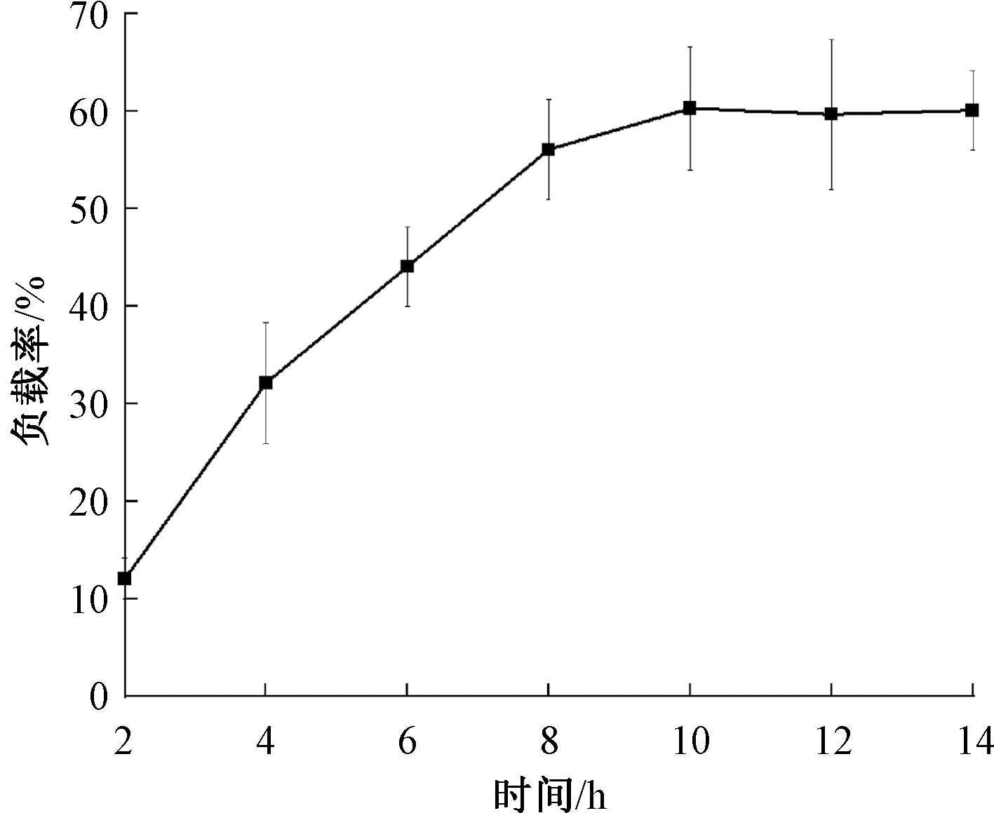 Loading rates of linalool by PAMAM at different strring time periods"