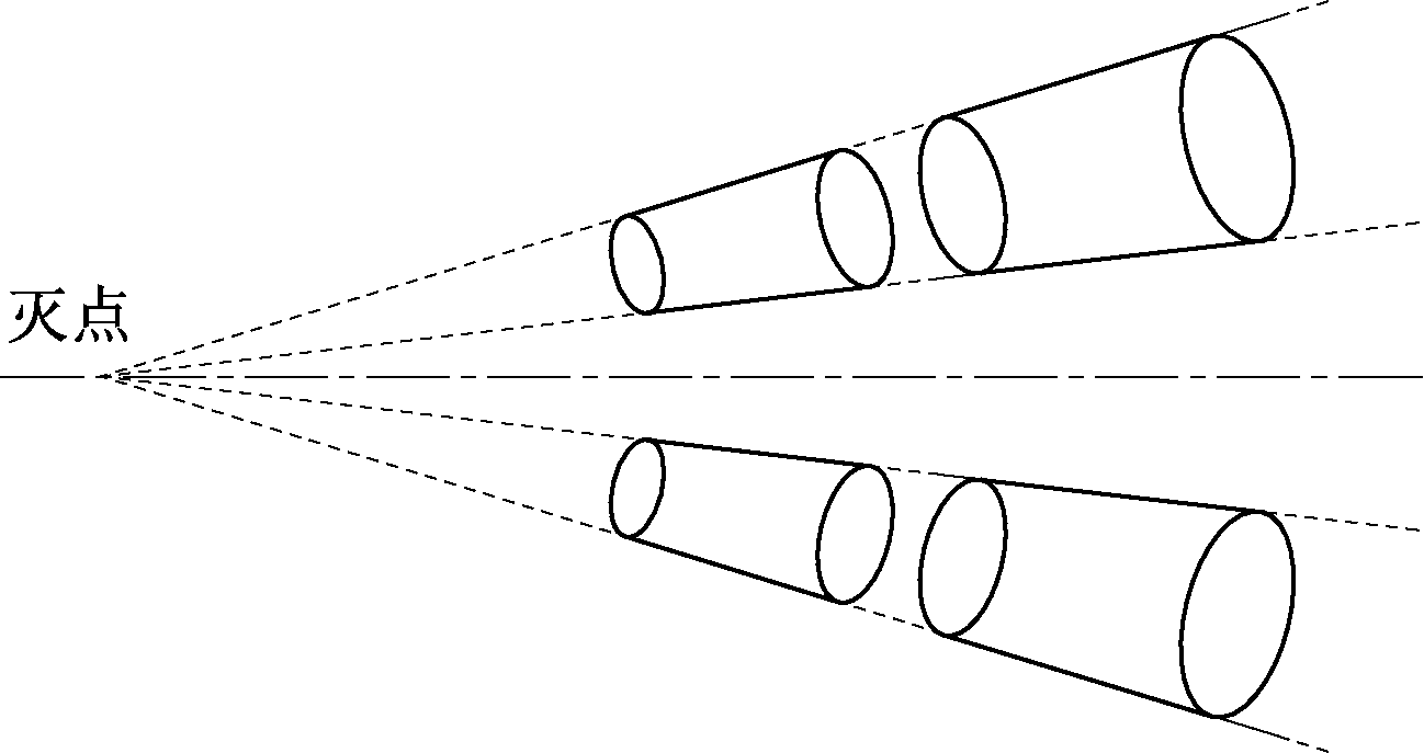 Sketch map of parallel cylinders similarity with same vanishing point illustration"