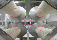 Fitting interfering ellipses to metal discs at end of warp beam"