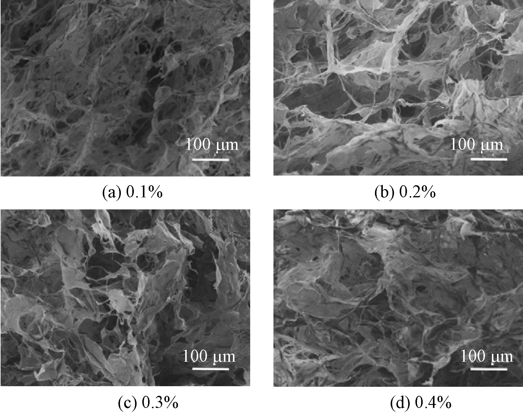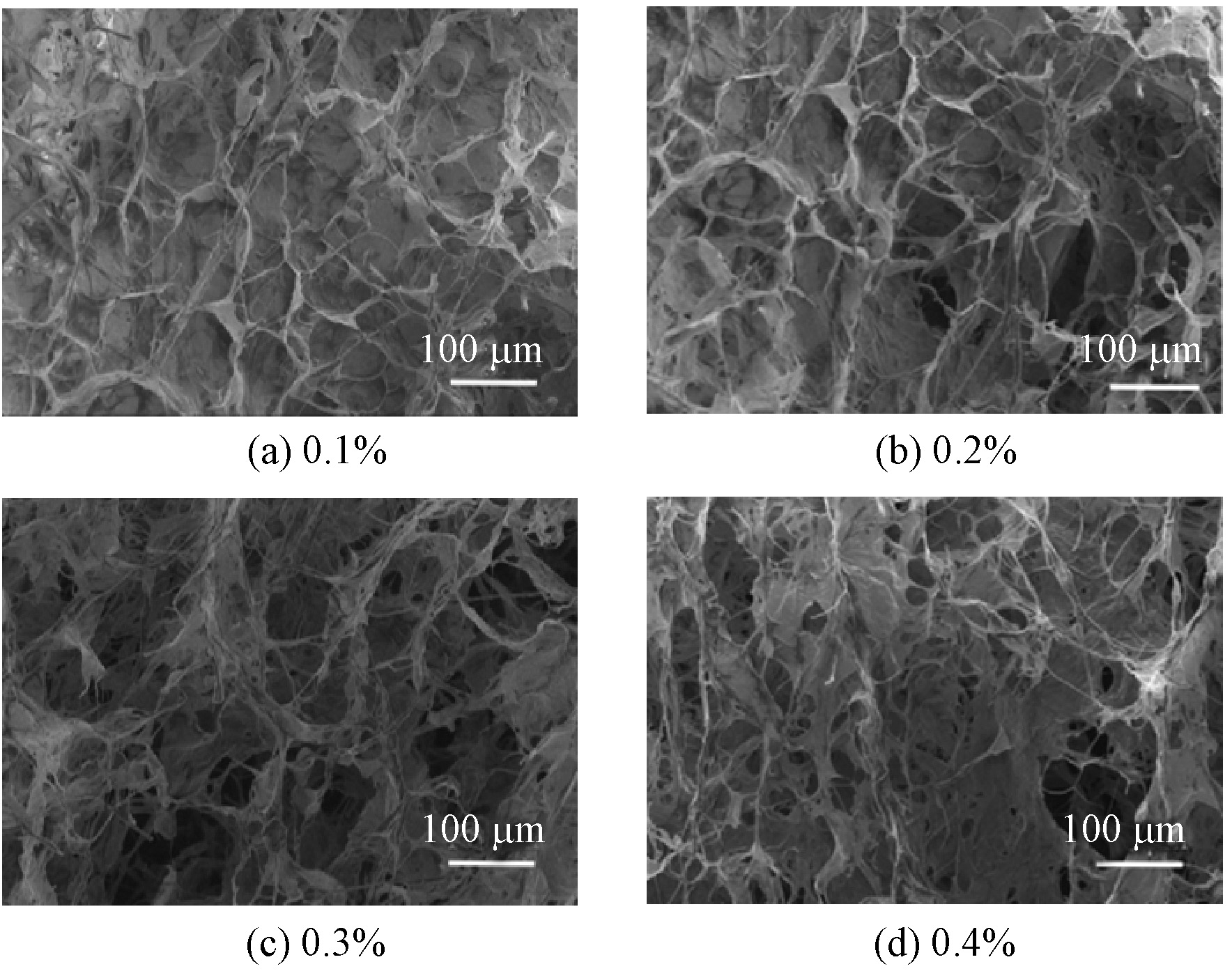 Morphology of uncompressed aerogels with different fiber concentrations"
