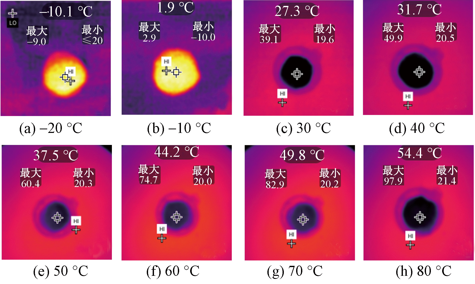Infrared thermography of aerogels tested at different temperatures in same location"