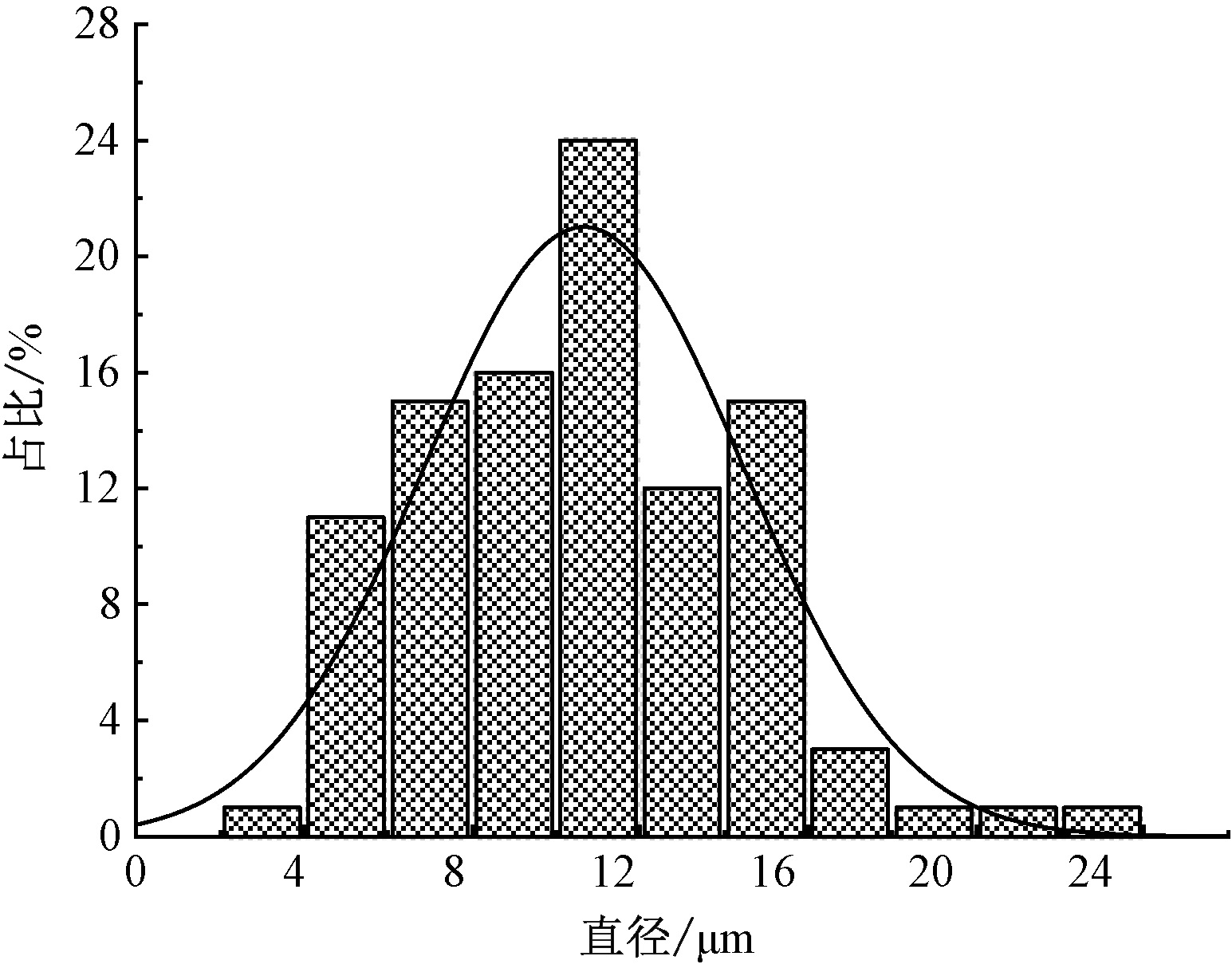 Diameter distribution of waste flax fibers after pretreatment"
