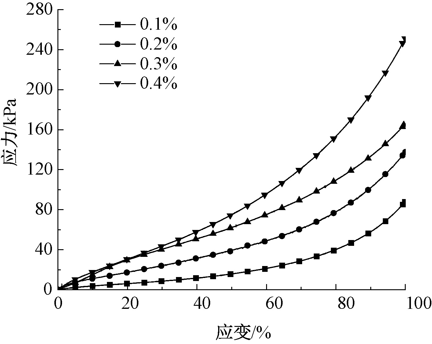Compressive stress-strain curves for different fiber concentrations"