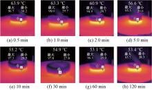 Infrared thermography of aerogels of different durations heated at same position"