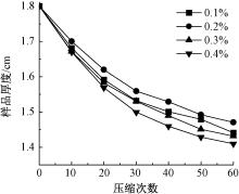 Effect of number of compressions on thickness of aerogels with different fiber concentrations"