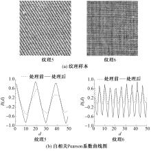 Example for calculation of spatial alignment regularity Rpos. (a)Texture samples;(b)Autocorrelation Pearson coefficient curves"
