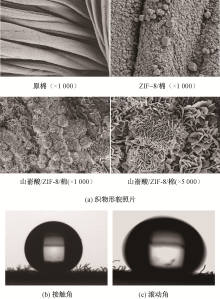 Morphology of cotton fabric before and after modification(a), θCA(b) and θSA(c) of behenic acid/ZIF-8/cotton"