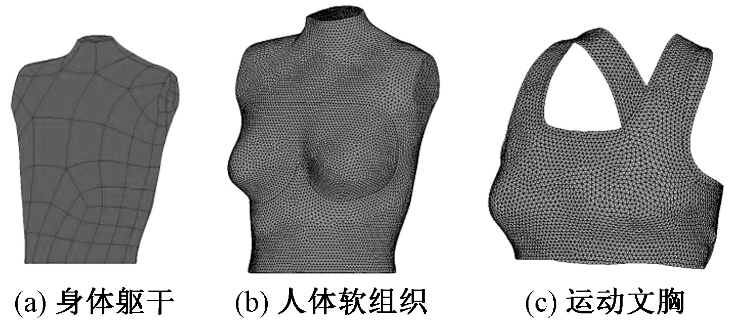 Finite element model of human body and sports bra. (a) Torso; (b) Soft tissue; (c) Sports bra"
