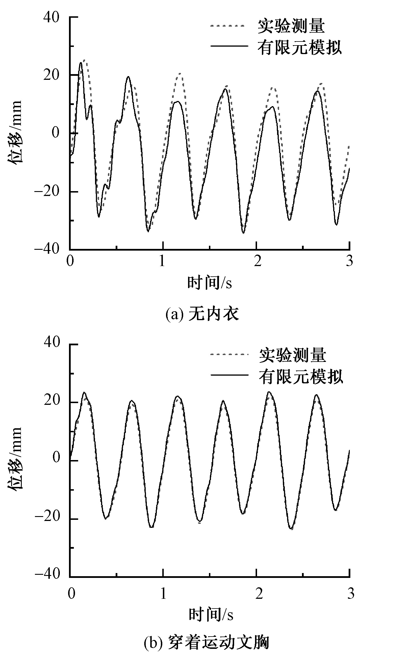 Experimental measurement and finite element simulation of breast displacement. (a) Braless condition measured; (b) Bra-wearing condition measured"