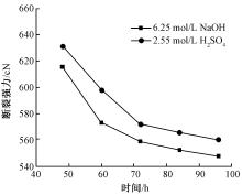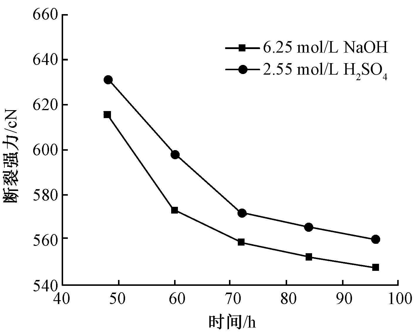 Effect of acid and alkali solutions on strength of PVC filament at different treatment times"