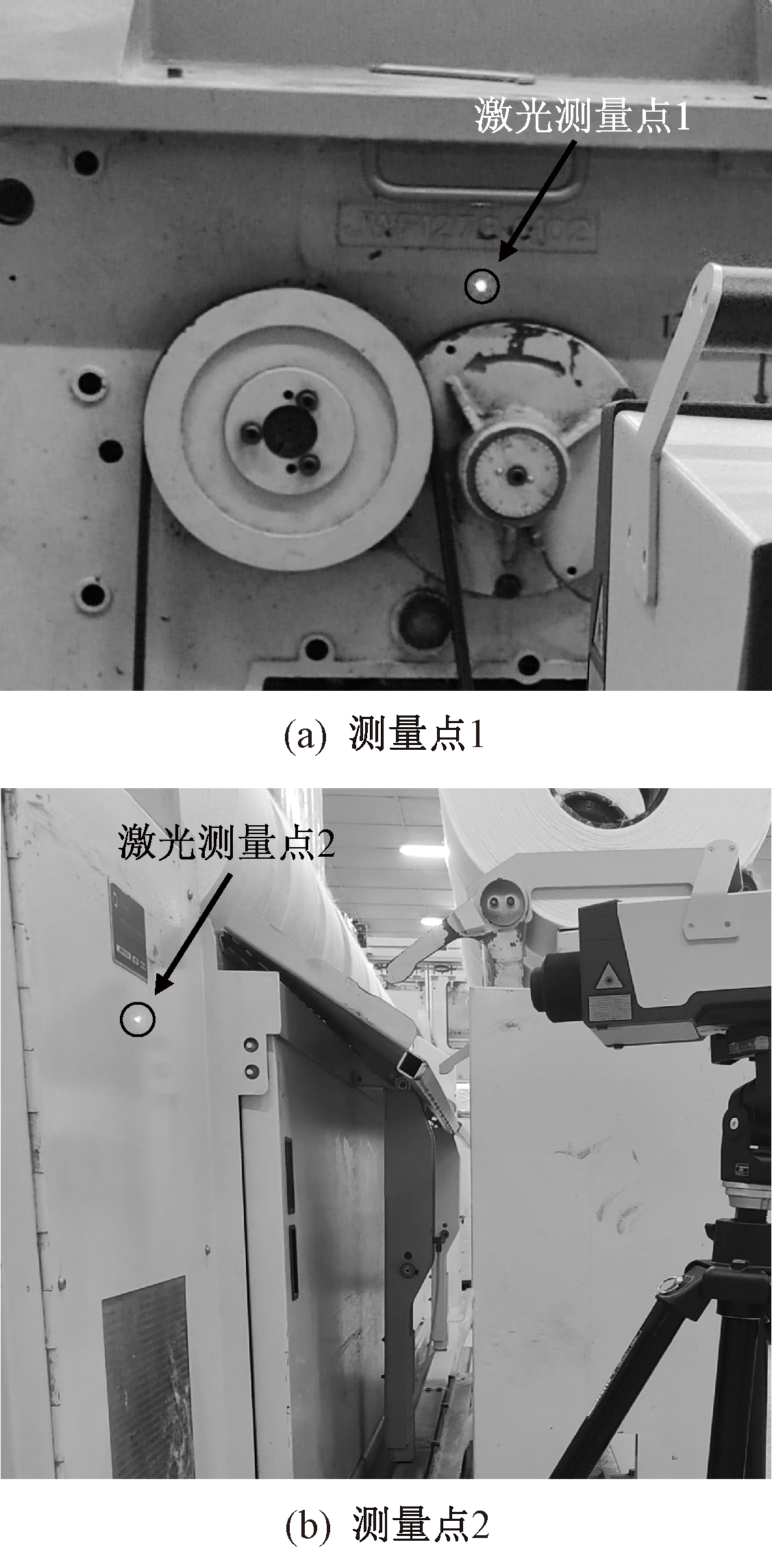 Position of vibration measurement point 1 (a) and point 2(b)"