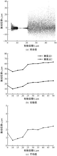 Vibration displacement for different initial tooth backlash. (a) Theoretical value; (b) Experimental value; (c) Average value"