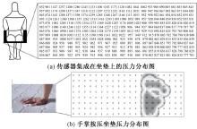 Sensor application test charts. (a) Pressure distribution of sensor integrated in cushion; (b) Pressure distribution of cushion by pressing cushion with palm of hand"