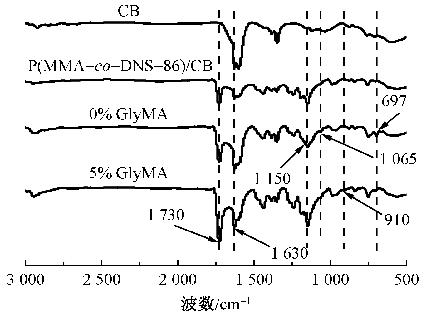 FT-IR spectra of CB and reactive polymer encapsulated CB latexes"