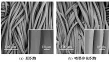SEM images of polyester/cotton blended fabric. (a) Bare fabric; (b) Inkjet printing fabric"