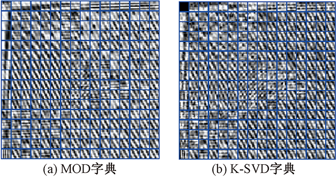 Learned dictionary. (a) MOD dictionary;(b) K-SVD dictionary"