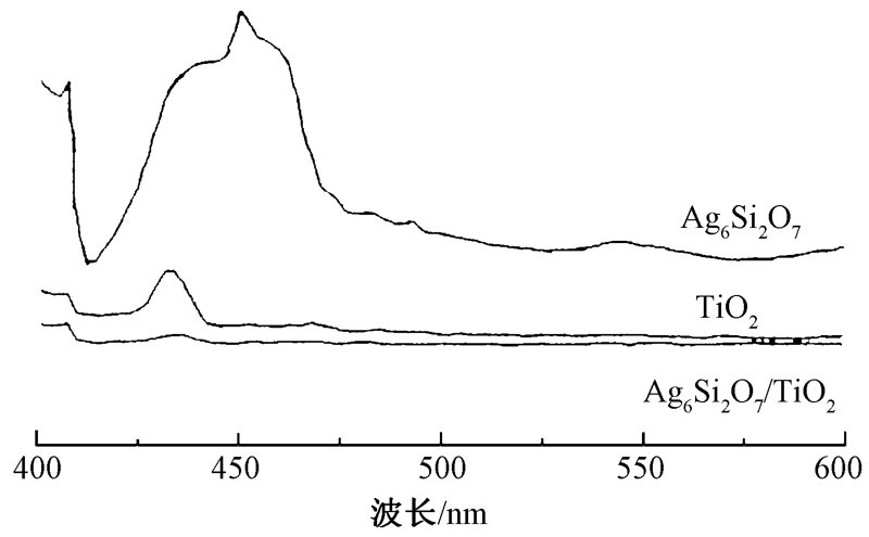 In order to prepare visible light catalyst with stable performance, a novel highly efficient Ag6Si2O7/TiO2 photocatalyst was prepared by an in-situ deposition method.The surface morphology, crystalline structure, chemical elemental composition and fluorescence spectrum of the photocatalyst were analyzed. The photocatalytic activity of the composite catalyst with different concentration of TiO2 were tested by degrading methylene blue (MB) under simulated visible light at room temperature. The results show that Ag6Si2O7 are coated on TiO2 uniformly, Ag6Si2O7 and TiO2 are tightly bonded in the form of core-shell structure, and Ag+, Si4+and Ti4+ exist in composite catalyst. The results of photocatalytic degradation of MB show that the Ag6Si2O7/TiO2 photocatalyst exhibits higher photocatalytic activity under visible light than Ag6Si2O7 and TiO2 used separately. When the mass fraction of TiO2 is 20%, the photocatalyst possesses the highest photocatalytic activity. The degradation efficiency for MB is up to 98.6% after irradiating in simulated solar for 20 min. The novel high-efficiency Ag6Si2O7/TiO2 photocatalyst has a broad application prospect in treatment of printing and dyeing wastewater.