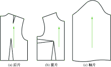 Upper prototype patterns. (a) Back pattern; (b) Front pattern; (c) Sleeve pattern"
