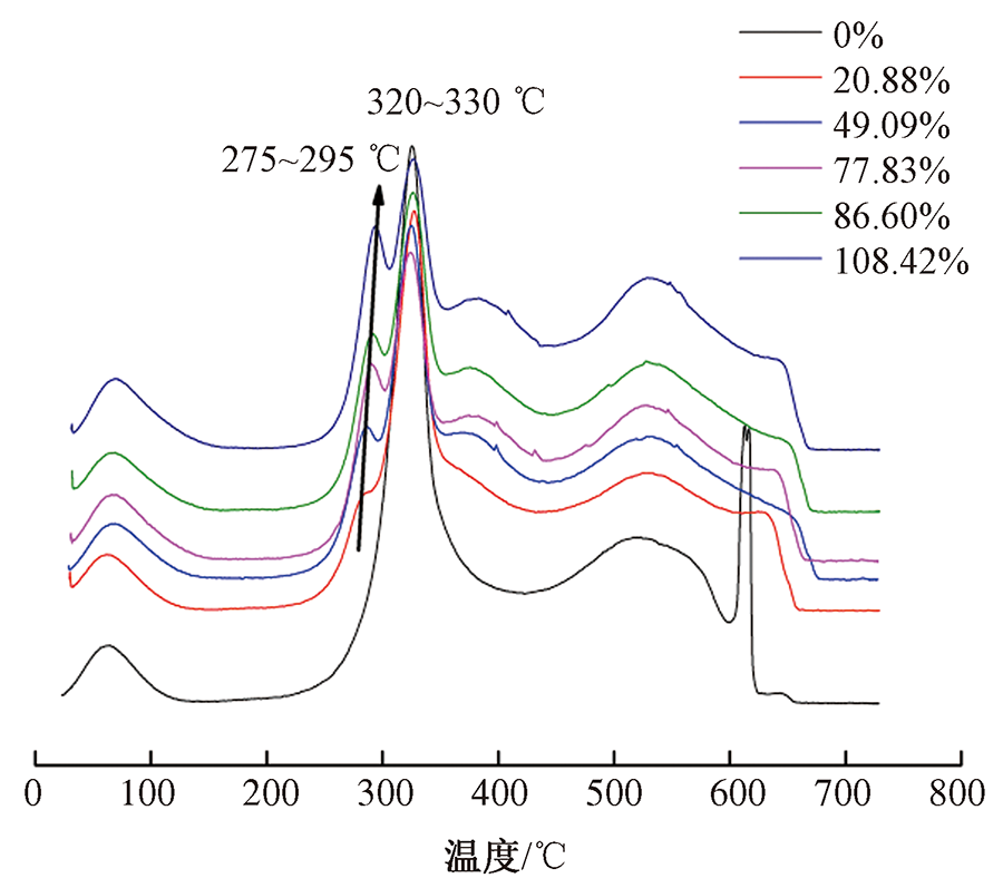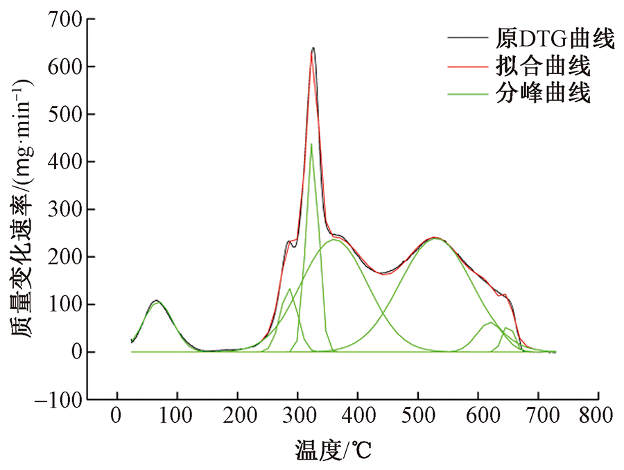 Gaussian peak diagram of DTG curve of 41.60% grafted silk"