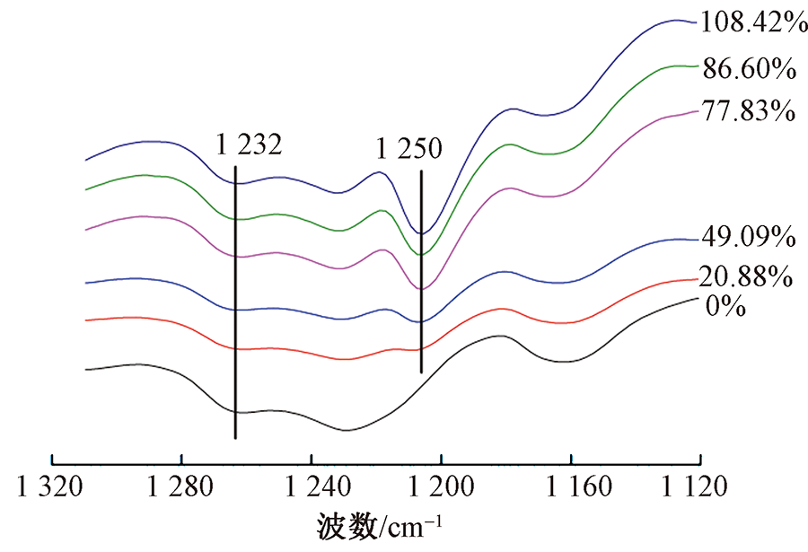 Infrared absorption spectrum curves of PMSF with different grafting rates at 1 310-1 120 cm-1"
