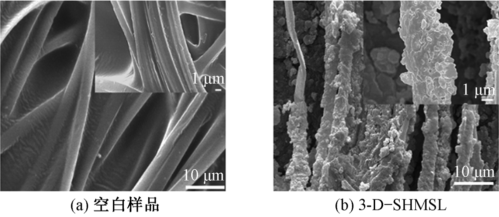 SEM images of different samples. (a) Blank sample; (b) 3-D-SHMSL"