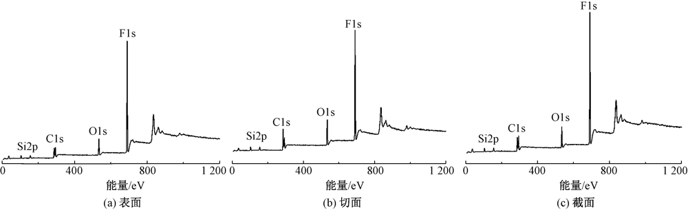 XPS spectra of different positions of 3-D-SHMSL. (a)Surface;(b)Interface;(c)Cross-section"