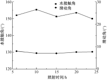 Changes of water contact angles and sliding angles with UV-irradiation time"