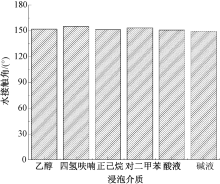 Water contact angles of 3-D-SHMSL after immersion into different media for 24 hours"