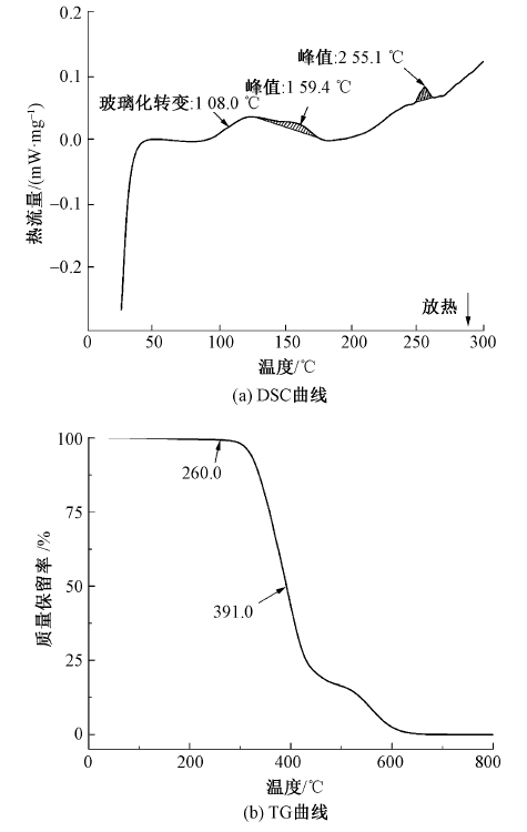 DSC (a) and TG (b) curves of 5# TPU raw material"
