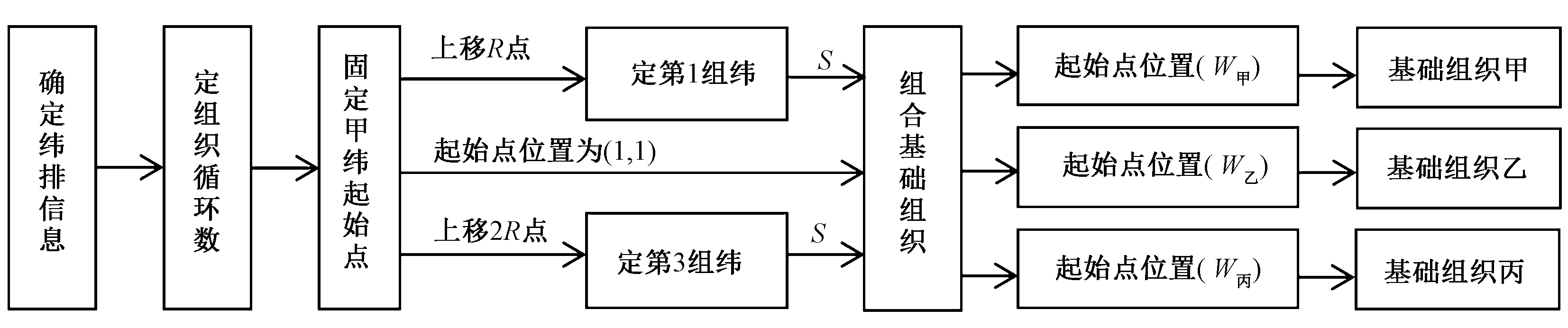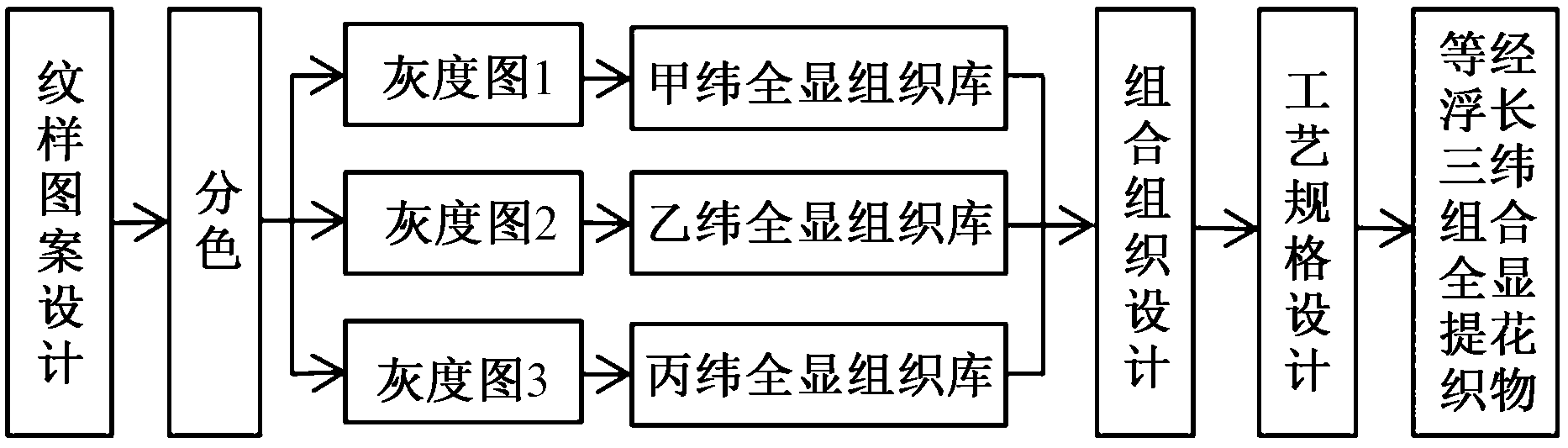Design flow chart of equal floating length in triple-weft jacquard fabric structure"