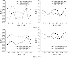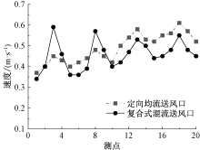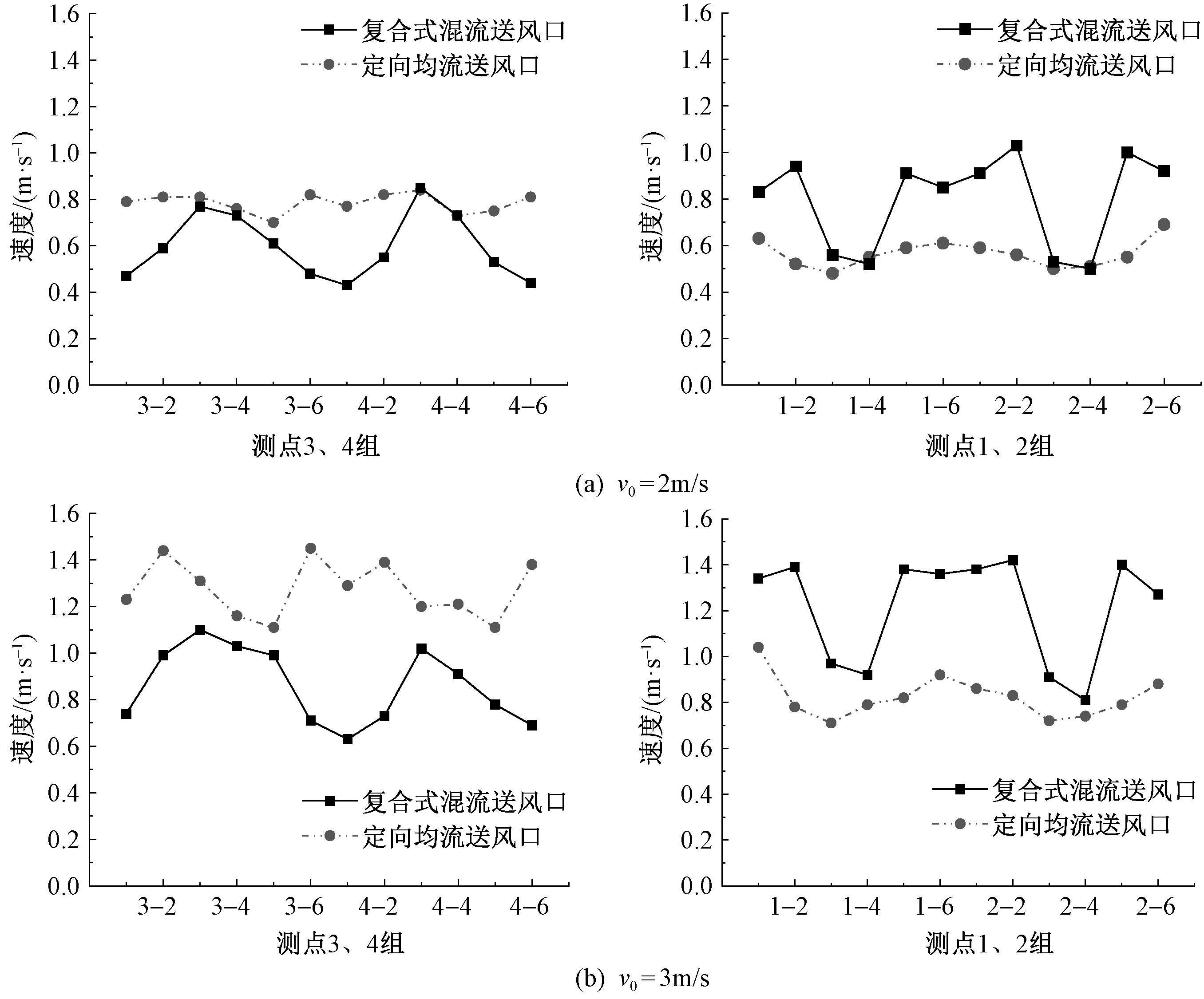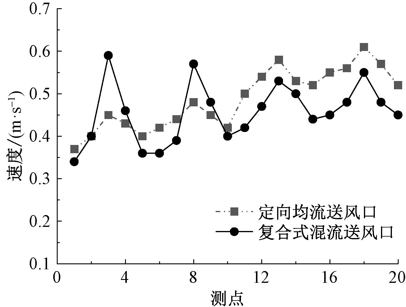 Velocity distribution of each measuring point under two types of air supply outlets"