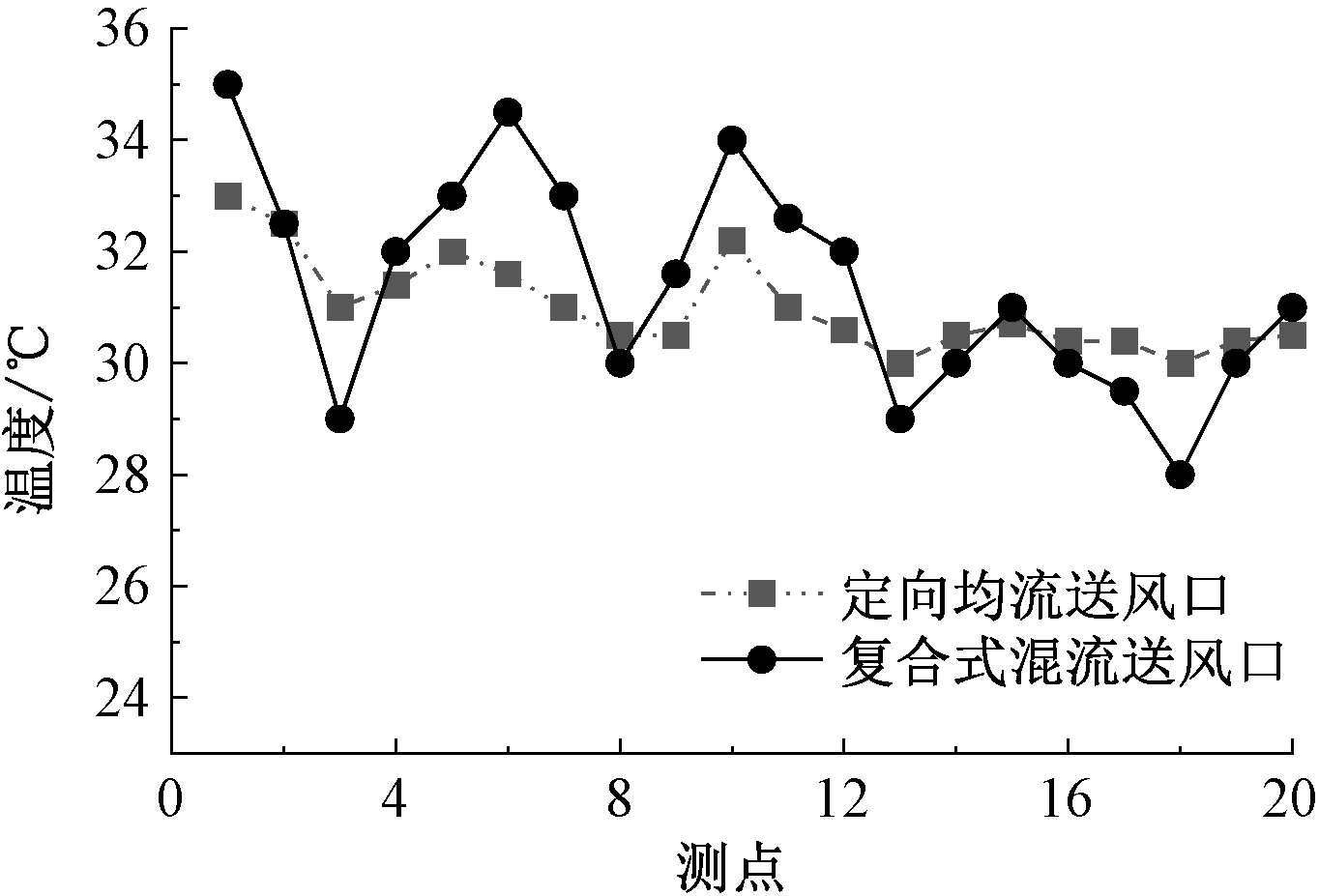 Temperature distribution of each measuring point under two types of air supply outlets"