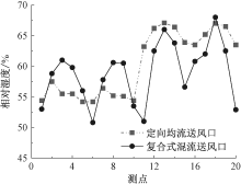 Relative humidity distribution of each measuring point under two types of air supply outlets"