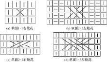 Schematic diagram of pattern structure of cable fabric. (a) Single side 1×1 right cable;(b) Double sided 2×2 left cable;(c) Single side 2×2 right cable;(d) Single side 3×3 left cable"