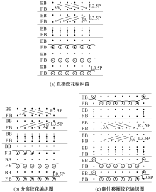 3×3 cable knitting diagram. (a) Direct cable knitting diagram;(b) Split cable knitting diagram;(c) Transfer cable knitting diagram"