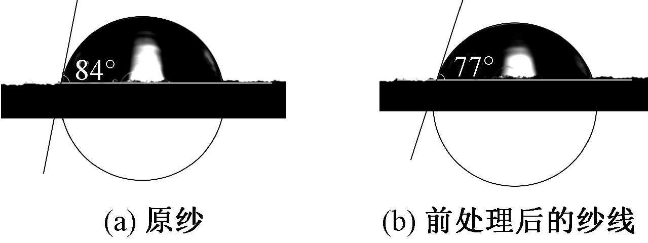Contact angle of yarn before and after pretreatment. (a) Original yarn; (b)Yarn after pretreatment"