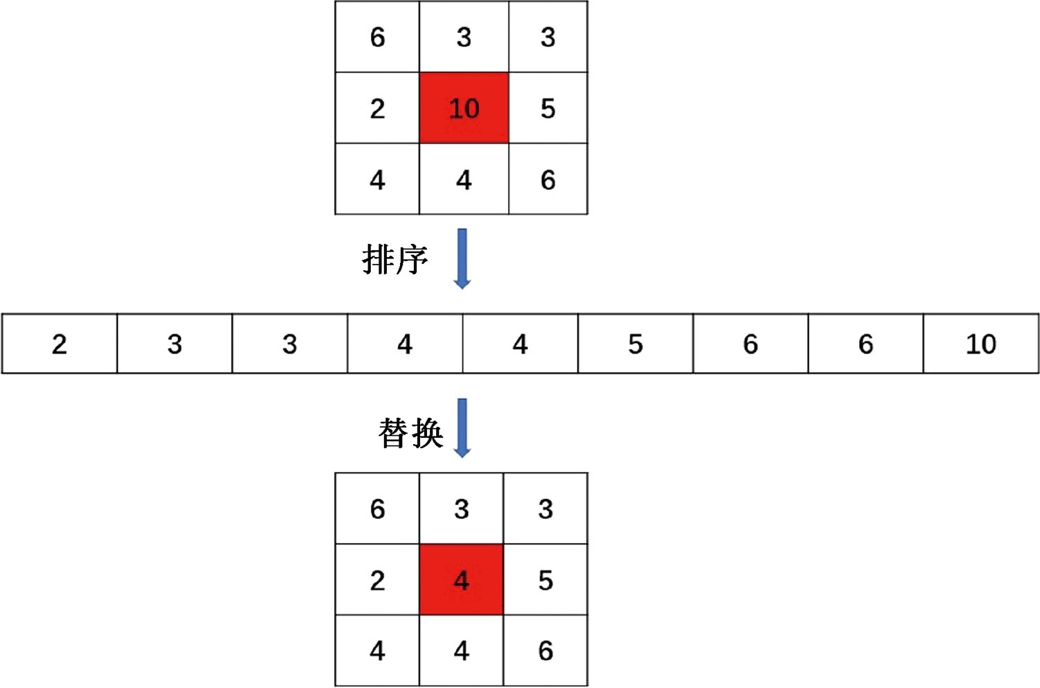 Schematic diagram of median filtering algorithm"