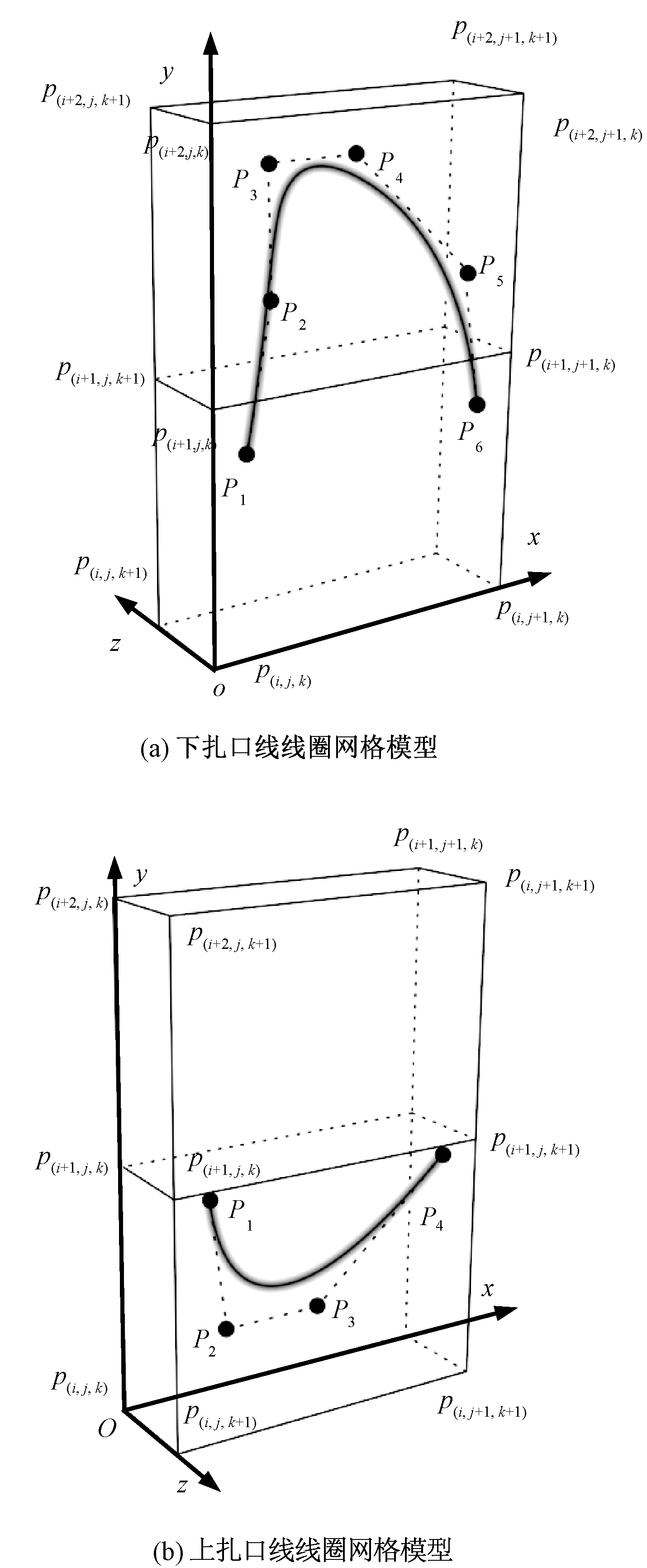 Welting loop geometric model. (a) Lower welt loop; (b) Upper welt loop"