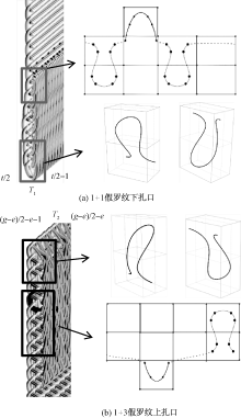 Cylindrical simulation diagram of double welt flat-needle yarn-added fabric. (a)Lower welt loop; (b)Upper welt loop"