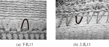 Actual fabric hanging arc loop. (a)Lower welt loop; (b)Upper welt loop"