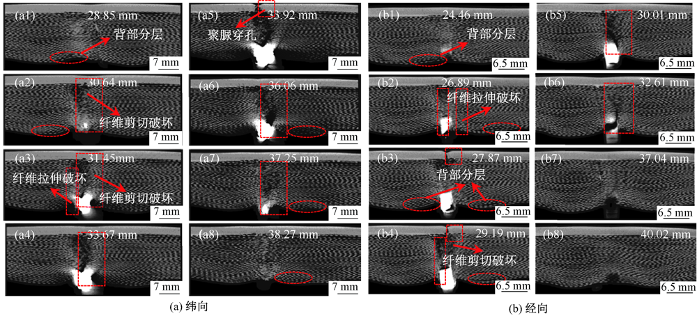 | 图6 破片侵彻后2D-C的纬向、经向截面形貌 |