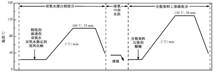 涤盖棉织物漂棉染涤两浴两步法工艺曲线如图2所示。