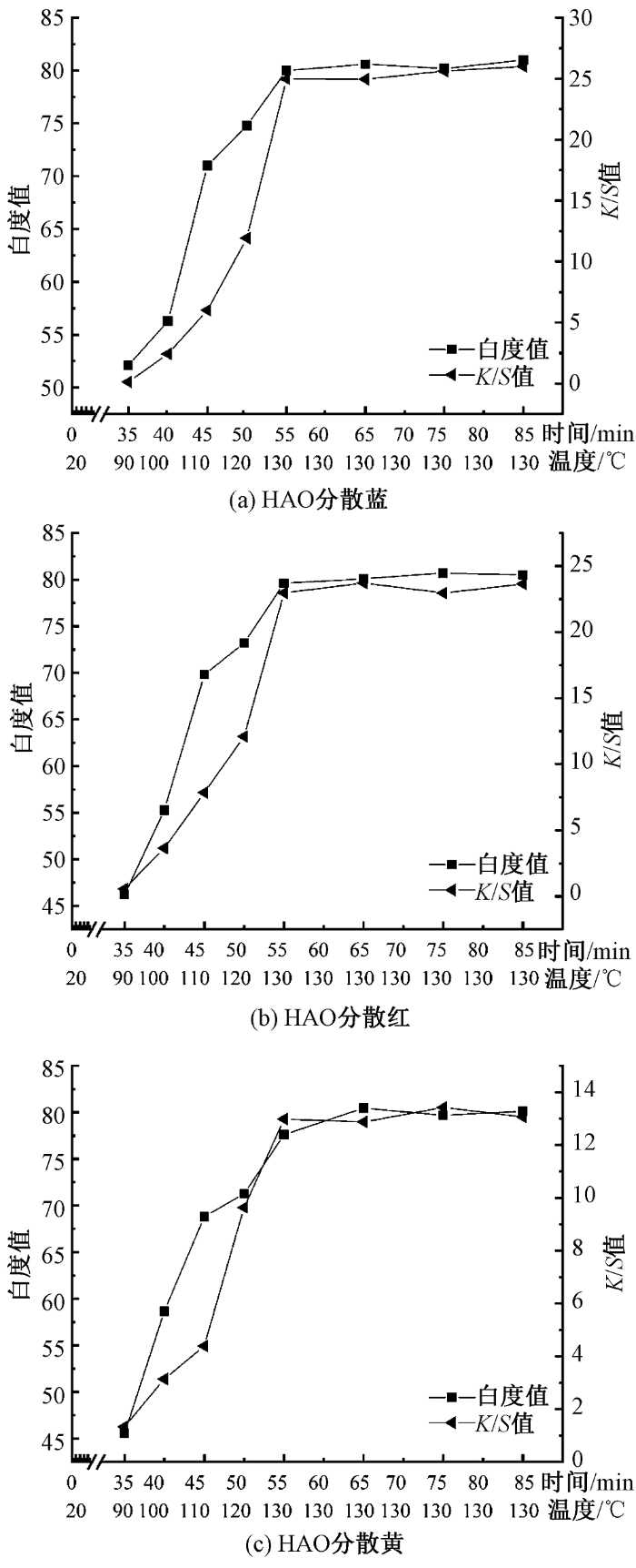2.2.3 加工时间和温度对白度和K/S值的影响