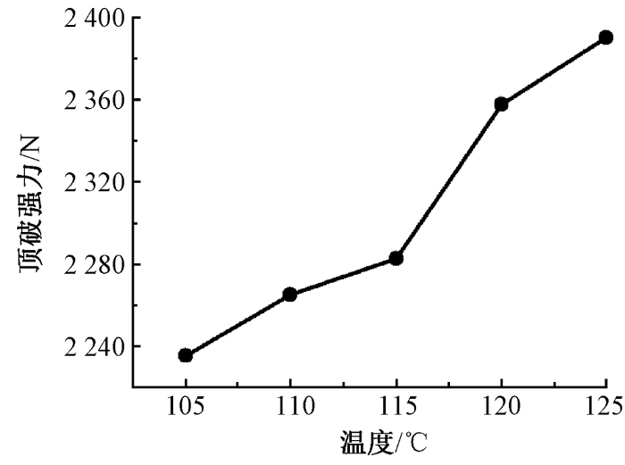根据GB/T 19976—2005《纺织品 顶破强力的测定 钢球法》,取45 mm×45 mm样品5份,采用电子织物强力机,拉伸速率为300 mm/min,测试染色针织鞋材顶破强力,结果取平均值。