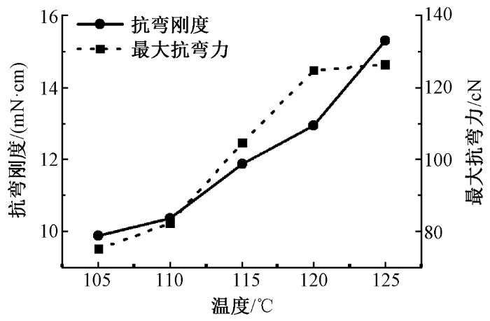 参考GB/T 18318—2009《纺织品 弯曲性能的测定》,取50 mm×55 mm样品5份,采用织物风格仪,测试染色针织鞋材弯曲性能。